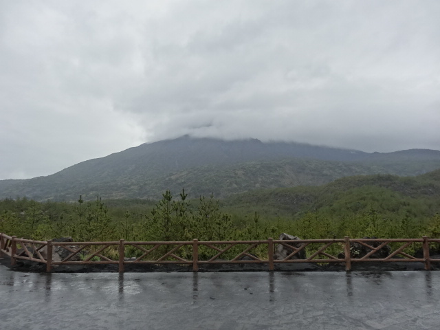 溶岩展望所から桜島を望むも頂上の方は見えない