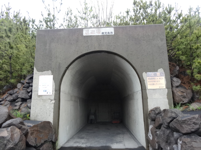 雲の下の桜島と避難壕