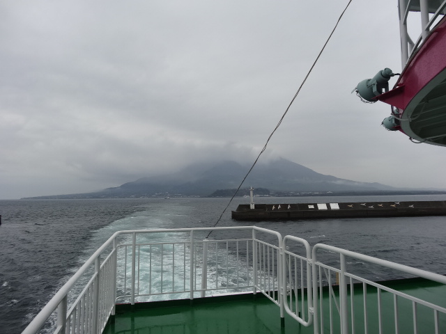 フェリーで15分 向かいの鹿児島市に向かう 桜島 雲か煙かは不明