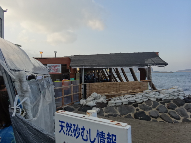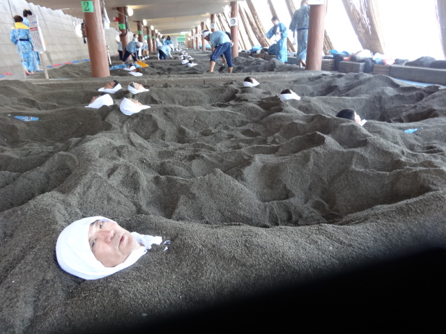 部屋に入りさっそく浴衣に着替え 宿の近くの「砂むし温泉」に行く