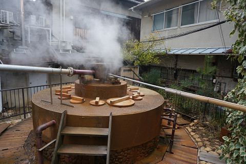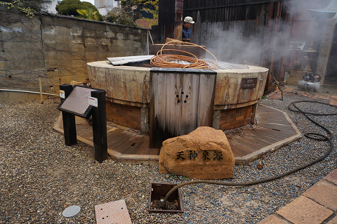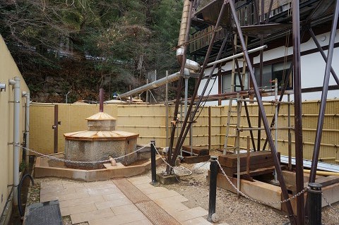 「太閤の湯」のすぐ裏手が源泉「極楽泉源」