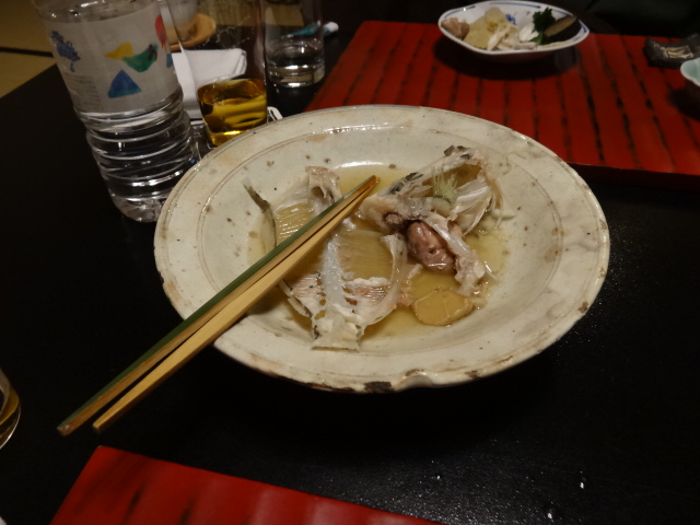刺身・カワハギの煮物(余りの旨さに骨だけに)は旨かった