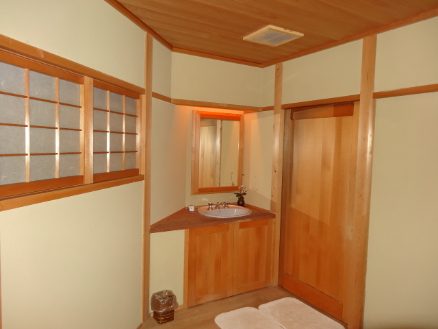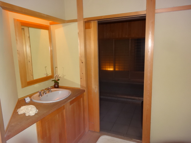 廊下を渡って木のあるところが風呂に近いところ