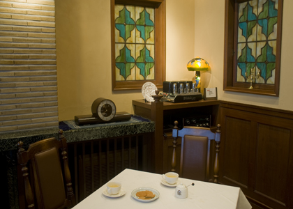 湯上がりに明治時代風のサロンで食前ドリンクサービス