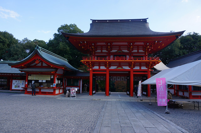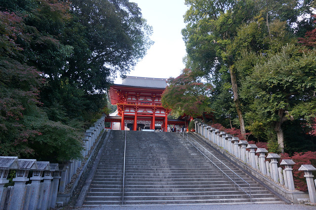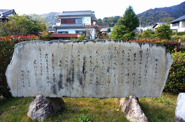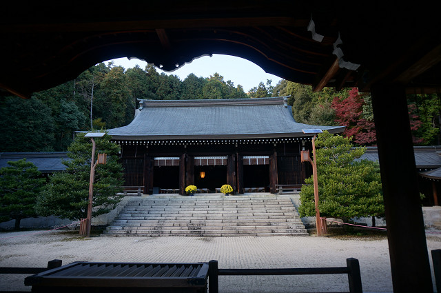 鬱蒼とした森の中を山手に向かうと「百人一首競技大会」の会場で知られる神社がある