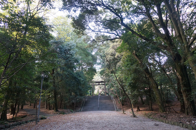 遺跡の並ぶ通りをつきぬけると近江神宮にあがる参道に至る