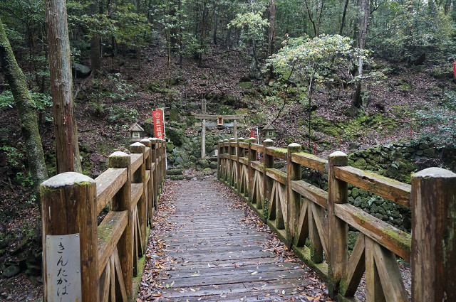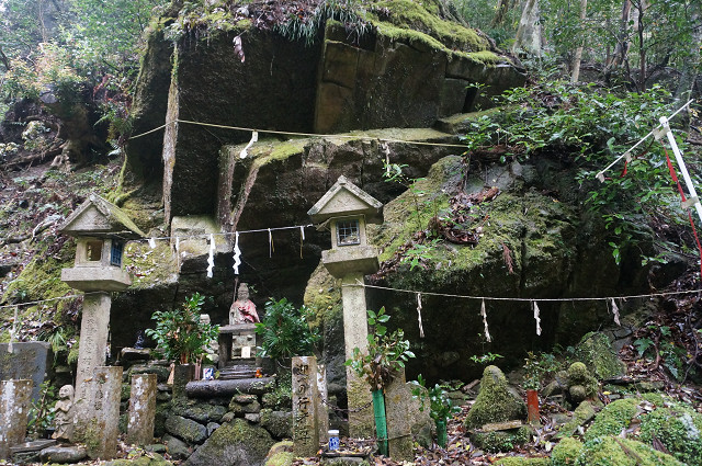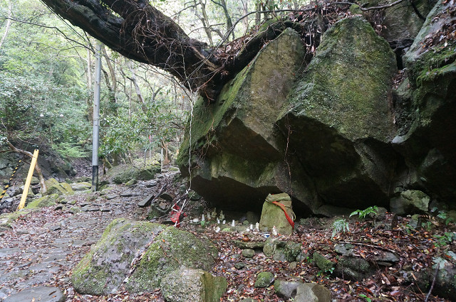 山の入り口にしめ縄が低い位置にある