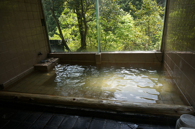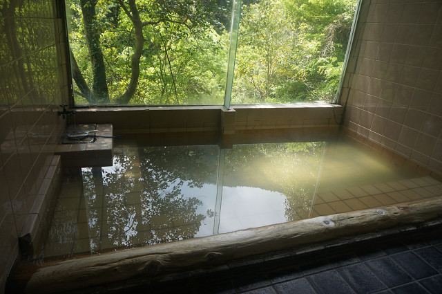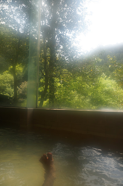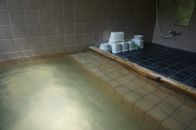 少し緑がかった41℃位のいい湯だ からだがぬるぬるしている
