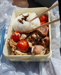 周りの景色を見ながら登頂の安堵と風を感じながら弁当を食った