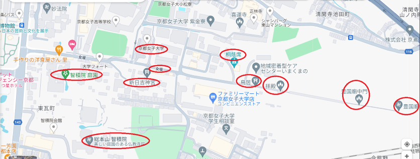 国立美術館の手前の交差点を左に曲がれば「豊国神社」「方広寺大仏殿跡」「耳塚」