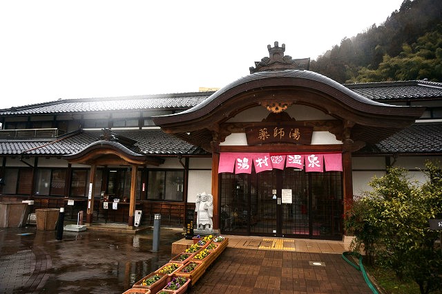 河原の方に降りていくと早速 公衆浴場「薬師湯」がある