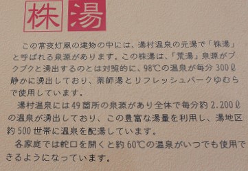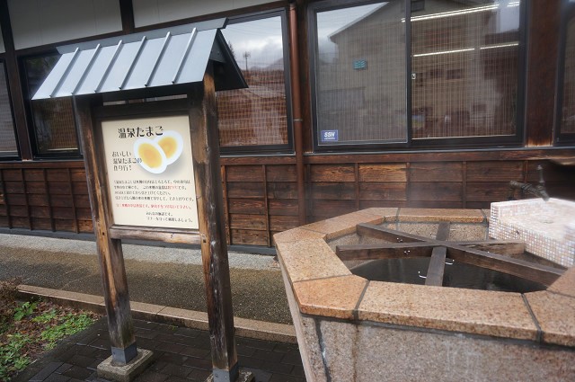 源泉温度は98℃で村中あちこちに温泉卵がある