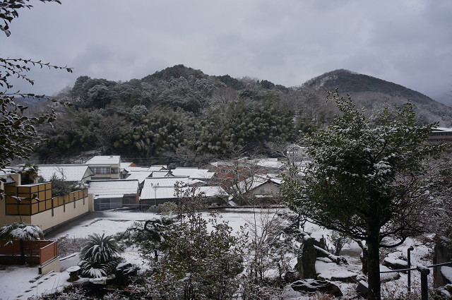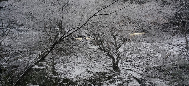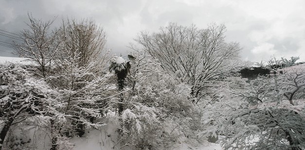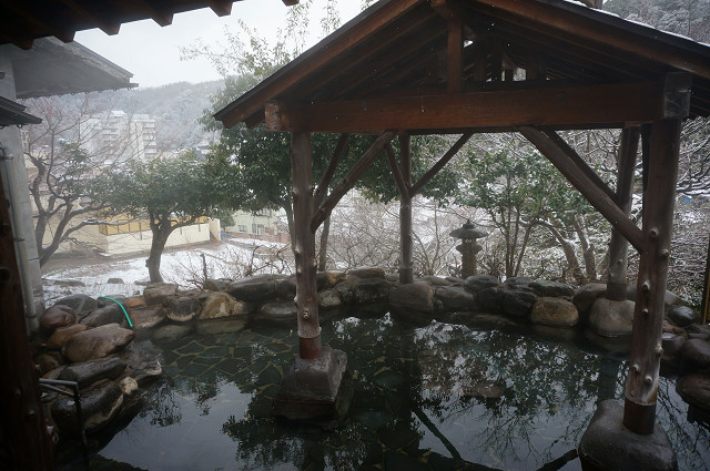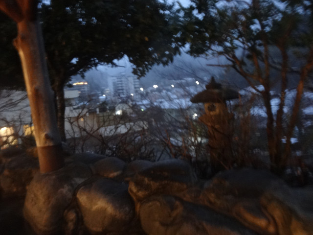 雪見風呂とはいかないが時々雪が頭に舞い落ち