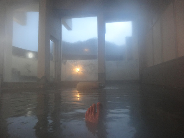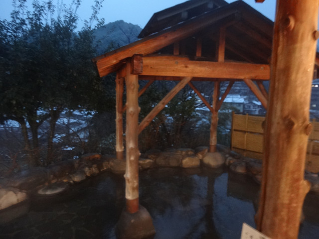 8時の朝食の前と10時のチェックアウトの前の2回露天風呂に行った