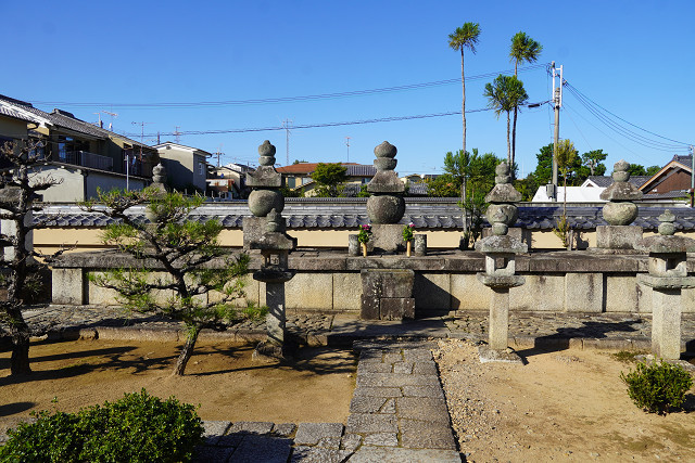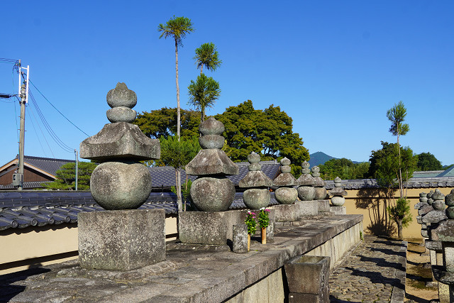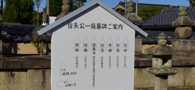 尚 背後の比叡山が見える墓地には織田家の供養塔が並べられている