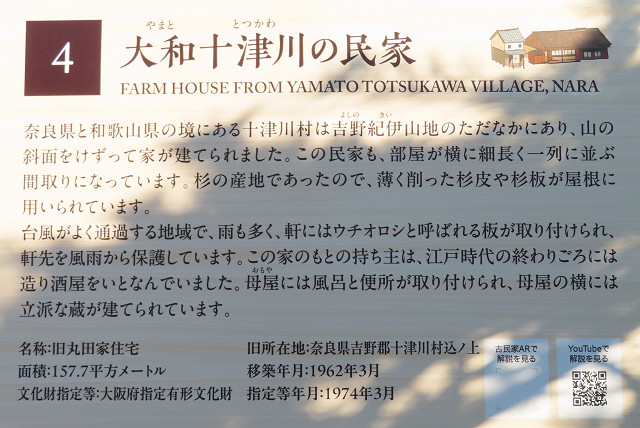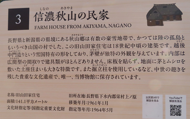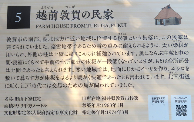 当館の民家は、1956年(昭和31年)に移築され、合掌造り民家保存のさきがけとなりました。』