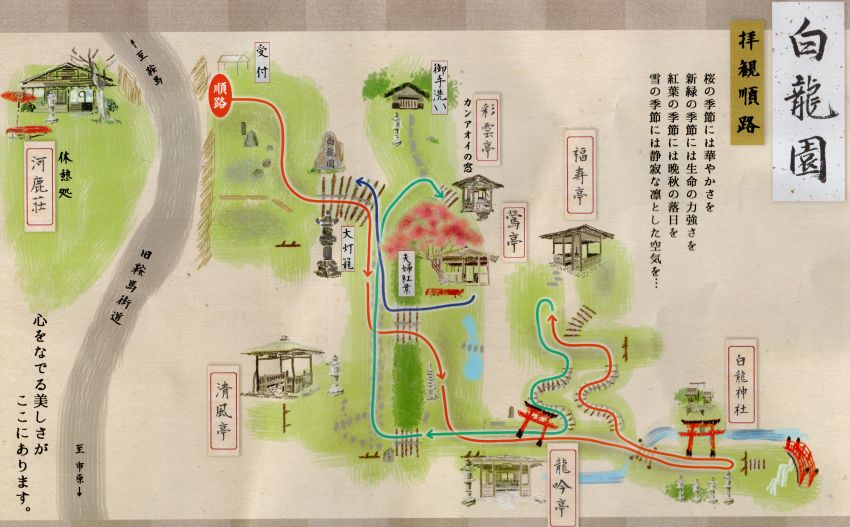 、霊域を守る神社を形成したことから、二文字をとって白龍園と名付けられました。』