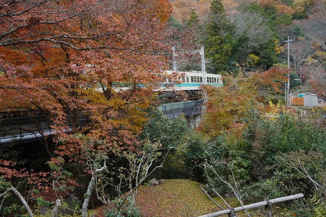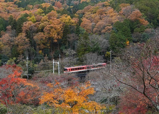 市原駅から列車の速度を落として紅葉トンネルを観る