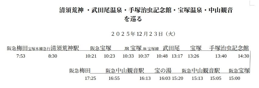 観覧は「清荒神」「手塚治虫記念館」「中山観音」相当タイトなスケジュールとなった