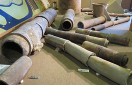 赤穂城内や城下町に張り巡らされた水道管の実物