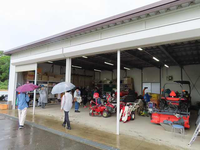 結局 農園見学やドローンを使った実演など中止になり 農機具倉庫で農機具の説明