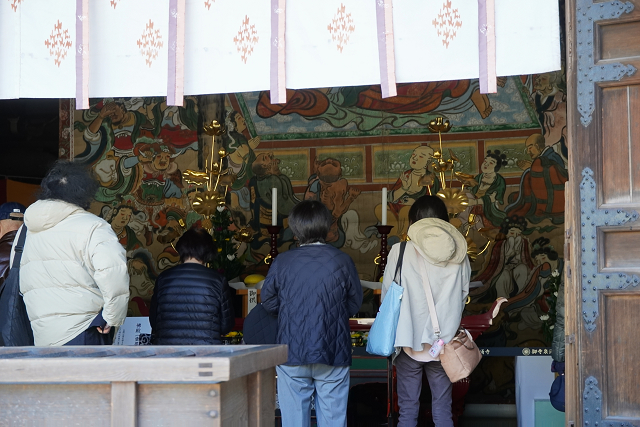 「涅槃図」は本堂の仏壇の前に広げられている