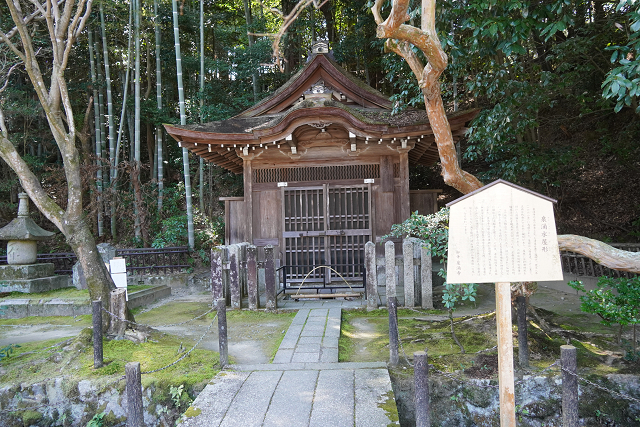 本堂の横に寺の名前の由来となった湧水所がある「泉涌水屋形」 覗くも湧水は殆ど見当たらなかった
