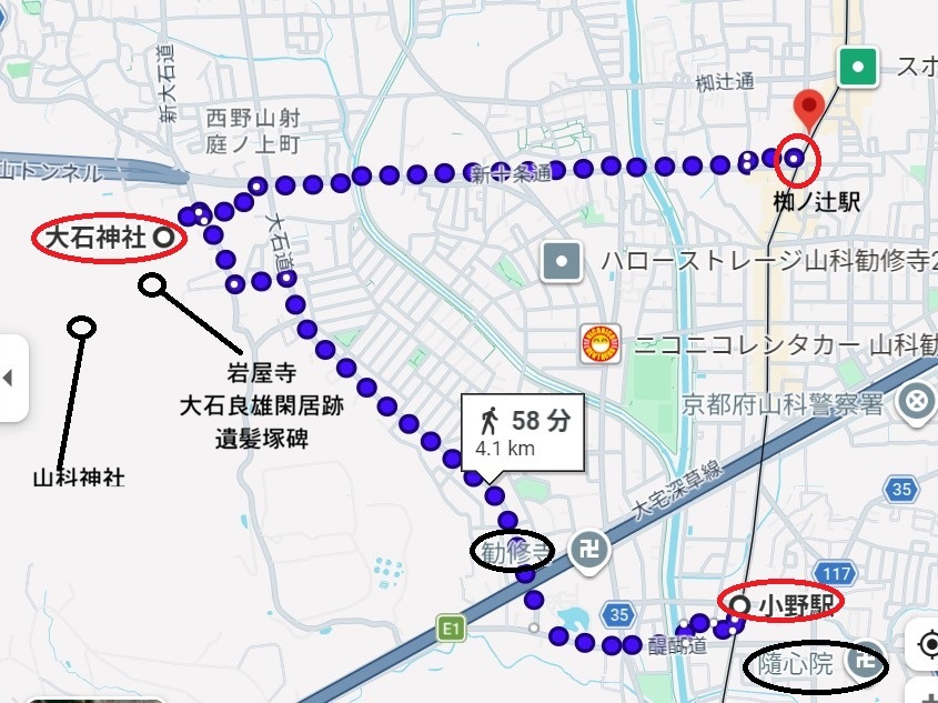 小野駅周辺にはは小野小町所縁の隋心寺と反対側には醍醐天皇創建の勸修寺(かしゅうじ)がある