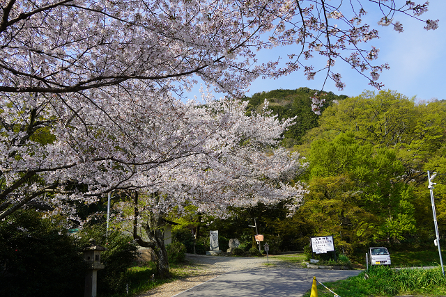 閑静な住宅街を山手に行くと神社前の満開の桜が迎えてくれる