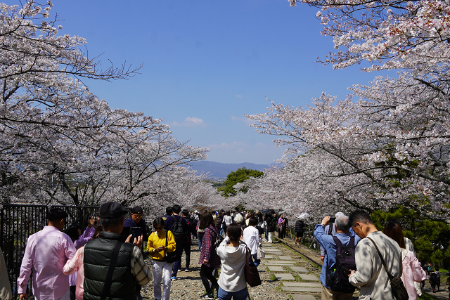 多くの花見客(半分は外人)とぞろぞろ ほとんどは途中にある疎水目当てである