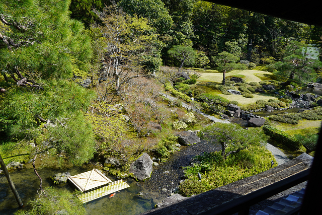 建物と庭園だけではなく、背後に広がる東山の景観が一体となった雄大な景色が広がります。