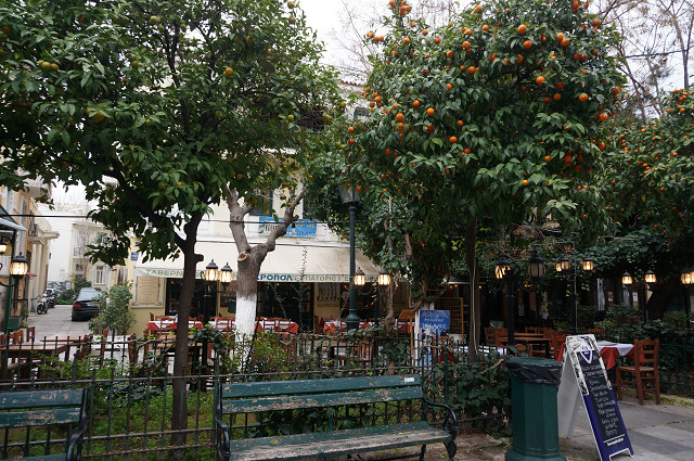 アテネ市内の街路樹はオレンジで満開