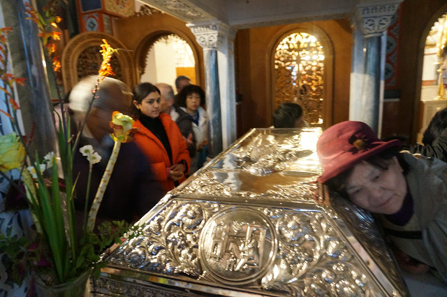 島の教会の銀の御棺に耳を当てて音が聞こえたら