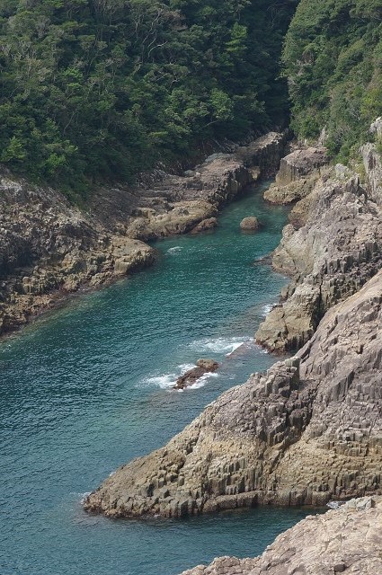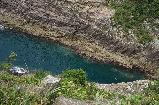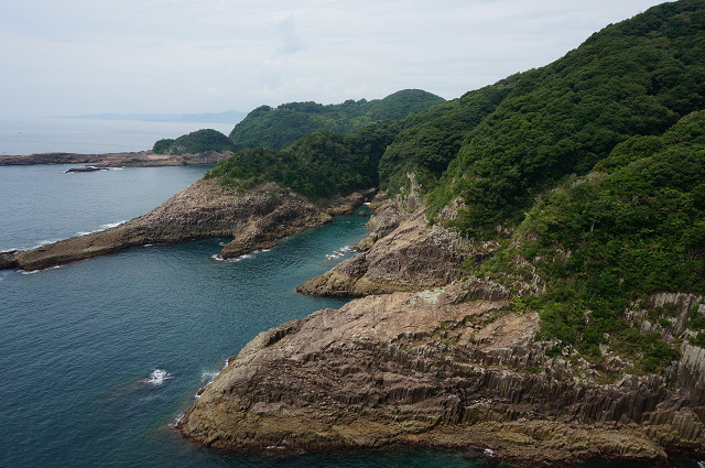 ここから海岸を望むと高さ70mと日本一の柱状岩