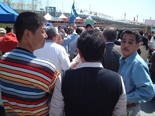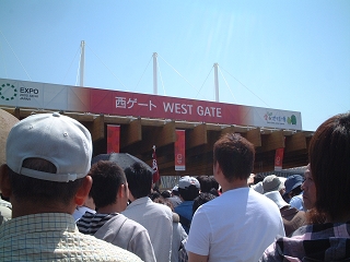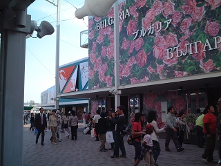 「日本館」前で並ぶ列から写す