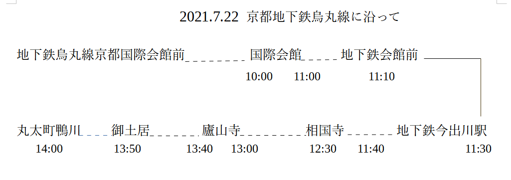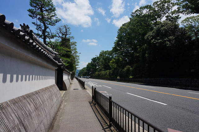 猛暑の中御所に沿って御所の東端 寺町通りを南に下る20分
