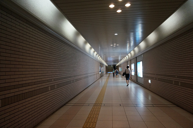地下鉄と会館は地下通路と地上の橋を渡れば徒歩