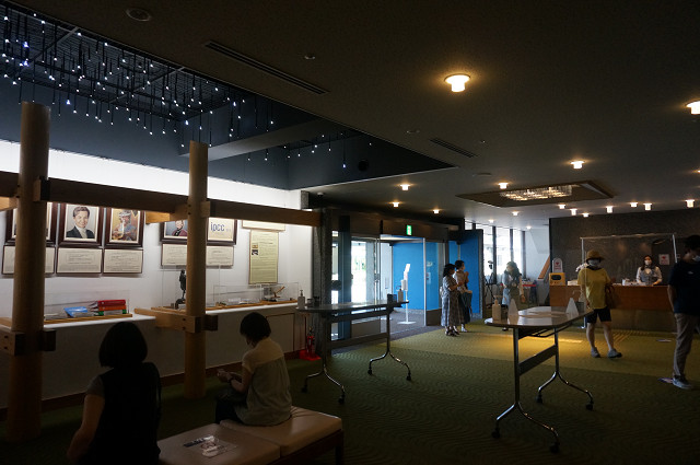 設計者大谷幸夫のプロフィールや来館者の名前や写真が展示されている