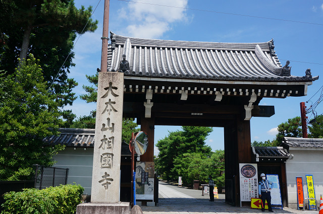 京都駅の前にのび、京都の真中を縦貫する大通り、烏丸通りを北上すると、ほぼ京都の中心あたりに京都御所があります。京都御所の北の門、今出川御門の前の通りを北上すると相国寺があります。