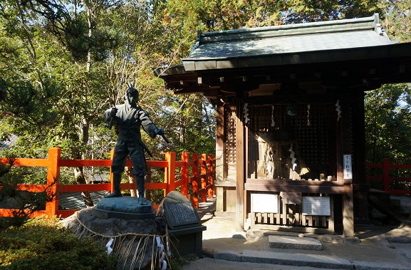 境内の「宮本武蔵像」にご挨拶