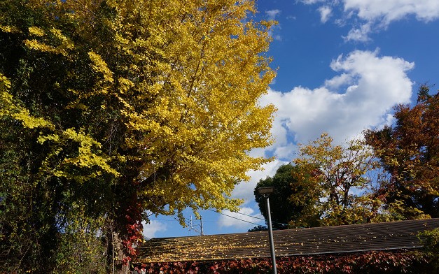 駐車場の銀杏もいよいよ秋たけなわである