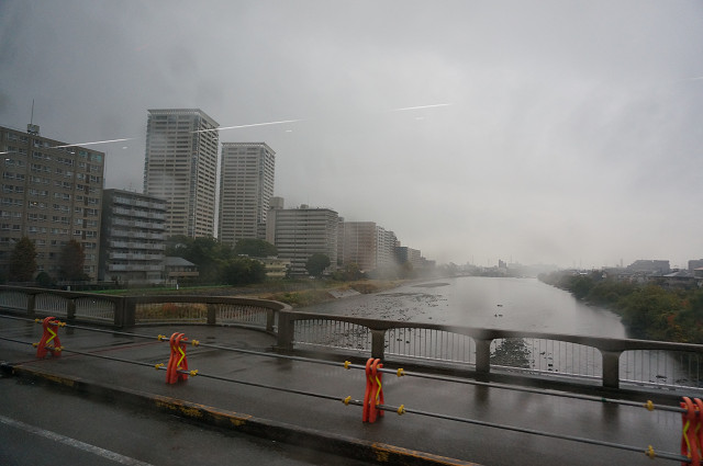 宝塚駅周辺と武庫川の雨