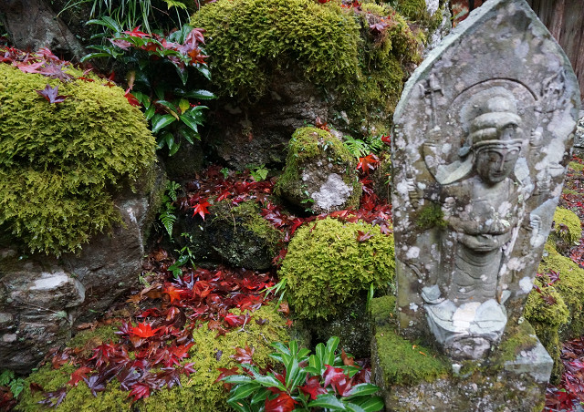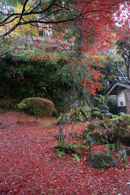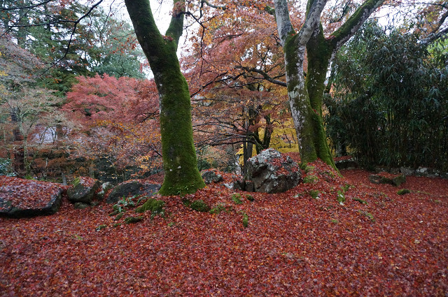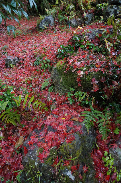 木を見上げるよりも地を見る方が紅葉の数が多い
