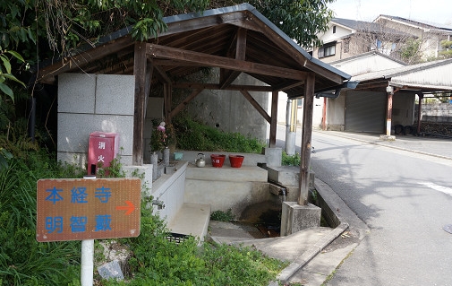 小栗栖の山にぶつかって日野街道を右に折れ少し歩くと山に向かう細い道がある