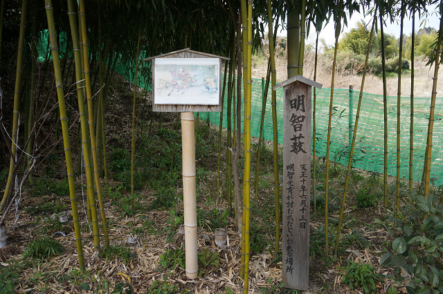 次の目的は地下鉄東西線石田駅や山科川を超えた山の中腹にあるという「明智藪」だ