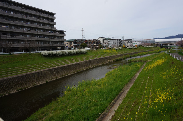 駅前の交差点から山科川(醍醐から淀川に流れる一級河川)を渡り