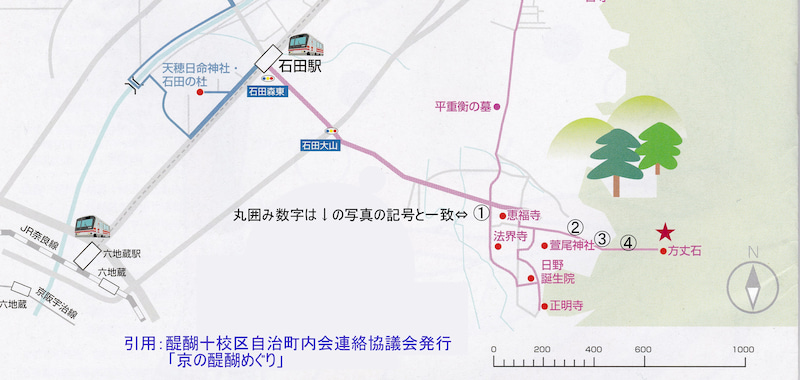 そして六地蔵駅に戻り山科川の周辺に点在するいくつかの神社・遺跡をめざして歩く
