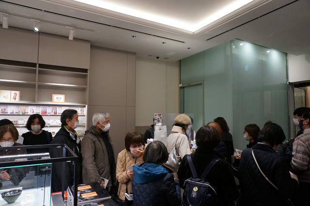 周りは人の群れ 頭ごなしに覗く 他の2つの天目より模様がはっきりしている