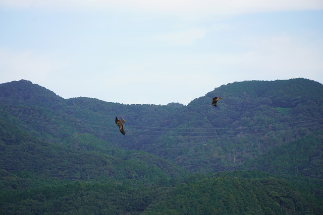 鷺(白)と鵜(黒)が良い餌場の取り合いをしているのだろうか