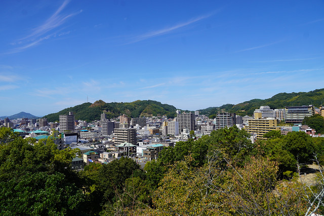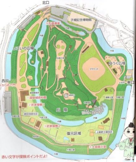 JR駅前から伊予電で道後温泉の1つ手前「道後公園 湯築城趾」で降りる